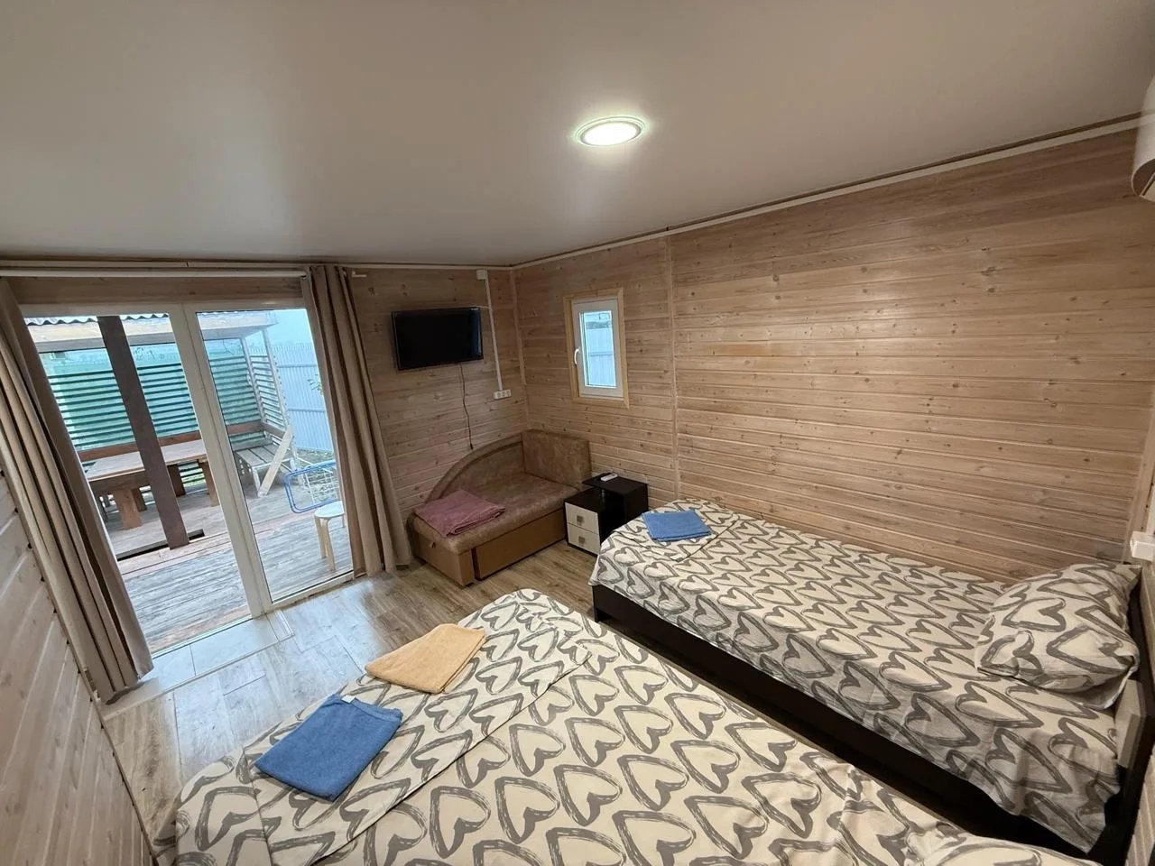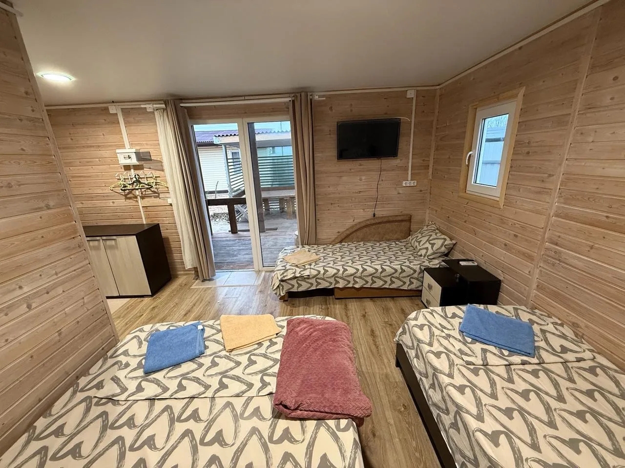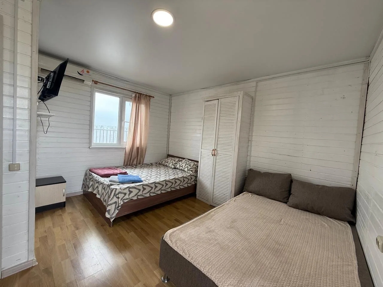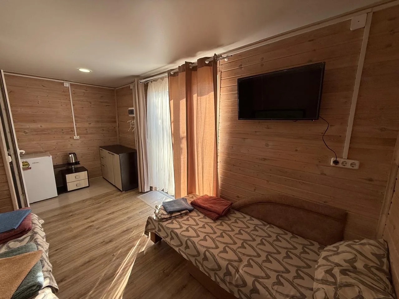 Оборудованы всем необходимым для комфорта: двуспальные и односпальные кровати, диваны, шкафы, комоды и тумбочки, телевизор с доступом к Wi-Fi, холодильник, сплит-система, электрочайник.