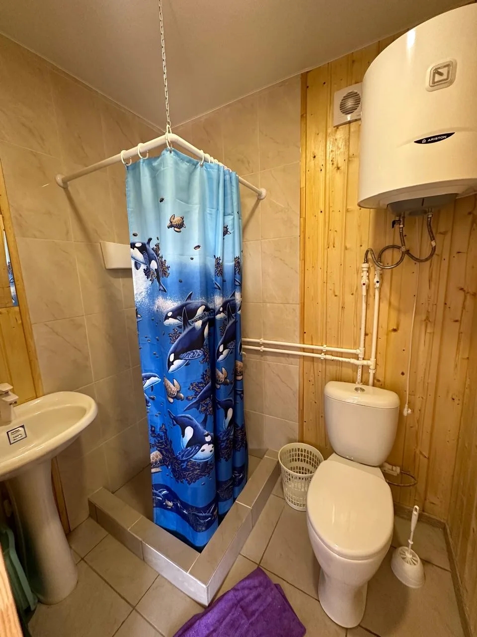 В совмещённой ванной комнате находятся душ и индивидуальный бойлер для бесперебойного снабжения горячей водой.